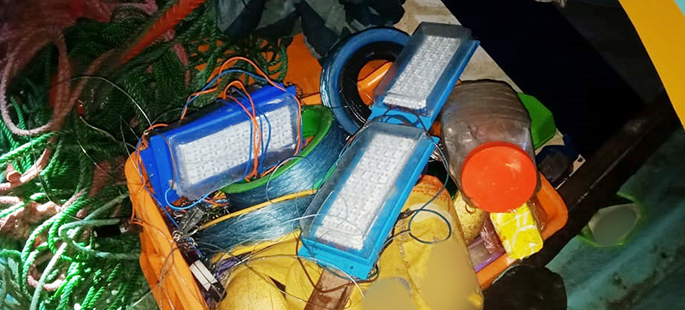 විදුලි ආලෝක ධාරා භාවිතයෙන් නීති විරෝධී ධීවර කටයුතු සිදුකළ පුද්ගලයින් 08 ක් නැගෙනහිර මුහුදේ දී නාවික හමුදා භාරයට