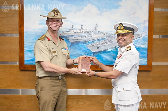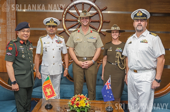 ඕස්ට්රේලියානු ජාතික ආරක්ෂක විද්යාලයේ කර්නල් Brandon Wood ගේ ප්රධානත්වයෙන්, ඕස්ට්රේලියානු ජාතික ආරක්ෂක විද්යාලයේ ආරක්ෂක හා උපාය මාර්ගික අධ්යයන පාඨමාලාව හදාරනු ලබන නියෝජිත පිරිසක්, 2025 ඔක්තෝබර් මස 21 වැනි දින නාවික හමුදා මූලස්ථානයේ නිල සංචාරයක් සඳහා පැමිණි අතර, එහිදී එම නියෝජිතයින් පිරිස නාවික හමුදාධිපති වයිස් අද්මිරාල් කාන්චන බානගොඩ හමු විය.