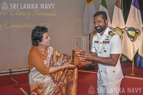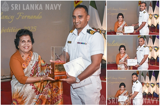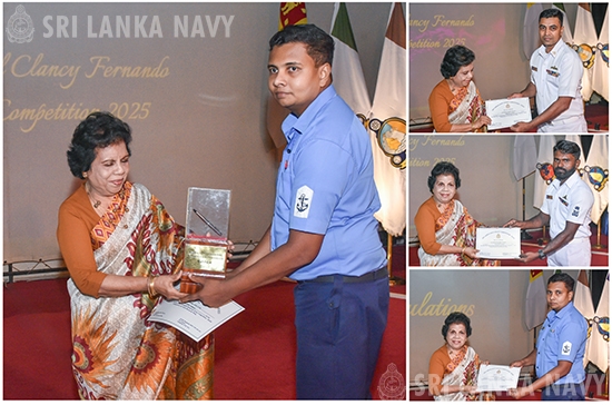 ශ්රී ලංකා නාවික හමුදා පර්යේෂණ ඒකකය මඟින් සංවිධානය කරනු ලැබූ නාවික හමුදා කථික තරඟාවලිය - 2025 (Public Speaking Competition - 2025) සහ 2025 වර්ෂයේ පවත්වන ලද අද්මිරාල් ක්ලැන්සි ප්රනාන්දු අනුස්මරණ රචනා තරඟාවලියේ ජයග්රාහකයින් වෙත සහතික සහ තිළිණ ප්රදානය කිරීම, 2025 නොවැම්බර් මස 20 වැනි දින නාවික හමුදා මූලස්ථානයේ අද්මිරාල් සෝමතිලක දිසානායක ශ්රවණාගාරයේදී, අධ්යක්ෂ ජෙනරාල් සෞඛ්ය සේවා රියර් අද්මිරාල් ජනක මාරඹේ ගේ ප්රධානත්වයෙන් සහ අභාවප්රාප්ත අද්මිරල් ක්ලැන්සි ප්රනාන්දු ගේ මැතිණිය මොනිකා ප්රනාන්දු මහත්මියගේ ගෞරවනීය සහභාගීත්වයෙන් පැවැත්විනි.