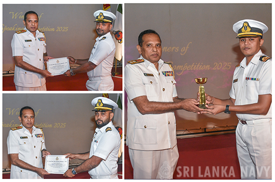 ඒ අනුව, 2025 දෙසැම්බර් මස 20 වැනි දින පැවති, නාවික හමුදා කථික තරඟාවලියේදී සුවිශේෂි දක්ෂතා පෙන්නුම් කරමින් පළමු, දෙවන හා තෙවන ස්ථාන ලබාගත් නිලධාරීන් වෙත සහ අද්මිරාල් ක්ලැන්සි ප්රනාන්දු අනුස්මරණ රචනා තරඟාවලියේ දක්ෂතා දැක්වූ නාවික හමුදා පුද්ගලයින් වෙත සහතික පත් හා ත්යාග පිරිනැමීම මෙහිදී සිදු කෙරිණි.