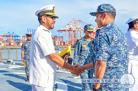 ශ්රිලංකා නාවික හමුදාවේ අභිමානවත් 75 වැනි සංවත්සරය වෙනුවෙන් කලාපීය හා ගෝලීය රාජ්යන් හතක (07) යුද නෞකා සහභාගීත්වයෙන් 2025 නොවැම්බර් මස 30 දින ගාළු මුවදොරට ඔබ්බෙන් වු මුහුදේදි පැවැත්වීමට නියමිත, ජාත්යන්තර යුද නෞකා නිරීක්ෂණය - 2025 සඳහා සහභාගිවීම සඳහා බංග්ලාදේශය සහ ඉන්දියාව නියෝජනය කරමින් යුද නෞකා තුනක් (03) 2025 නොවැම්බර් මස 25 සහ 26 දෙදින දිවයිනට පැමිණි අතර, ශ්රී ලංකා නාවික හමුදාව විසින් එම යුද නෞකා නාවික හමුදා සම්ප්රදායානුකුලව පිළිගැනීම, කොළඹ වරායේදී සිදු කෙරිණි.