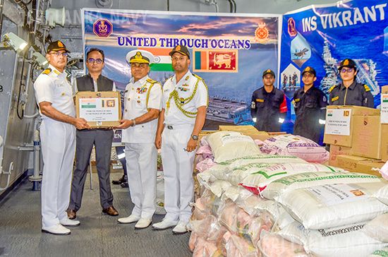 පසුගියදා ජාත්යන්තර යුද නෞකා නිරීක්ෂණය වෙනුවෙන් දිවයිනට පැමිණි ඉන්දීය නාවික හමුදාවේ INS VIKRANT හා INS UDAYGIRI යුද නෞකා වෙතින් දිවයිනට බලපා ඇති අයහපත් කාලගුණ තත්වය හමුවේ පීඩාවට පත් ජනතාව වෙනුවෙන් මානුෂීය ආධාර තොගයක් ලබා දීම 2025 නොවැම්බර් මස 28 වැනි දින සිදුකෙරිණි.