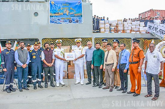 තවද, ශ්රී ලංකාවේ ඉන්දීය මහකොමසාරිස් කාර්යාලයේ සම්බන්ධීකරණයෙන්, දිවයිනට බලපෑ අයහපත් කාලගුණික තත්වය හමුවේ ආපදාවට පත් ජනතාව වෙත බෙදා දීම සඳහා තවත් මානුෂීය ආධාර විශාල තොගයක් රැගත්, ඉන්දීය නාවික හමුදාවේ INS SUKANYA යුද නෞකාව 2025 දෙසැම්බර් මස 01 වන දින දිවයිනට පැමිණි අතර, එම අවස්ථාව සඳහා නැගෙනහිර නාවික විධානයේ ආඥාපති රියර් අද්මිරාල් රවීන්ද්ර තිසේරා ඇතුළු රාජ්ය නිලධාරීන් පිරිසක් සහභාගි වුහ.