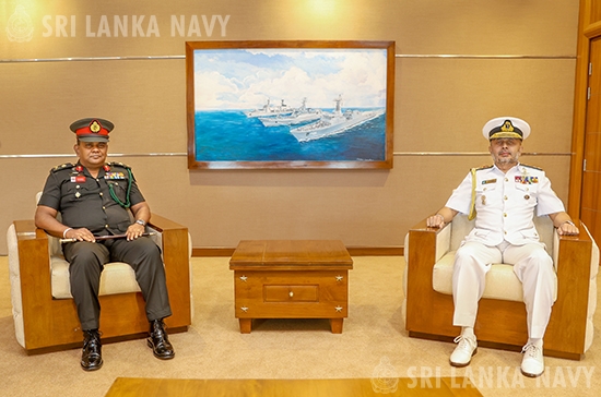 සපුගස්කන්ද, ආරක්ෂක සේවා අණ හා මාණ්ඩලික විද්යායතනයේ අභිනව ආඥාපති ලෙස පත්වූ, මේජර් ජෙනරාල් විජයනාත් ජයවීර අද (2026 ජනවාරි 09) නාවික හමුදා මූලස්ථානයේදී, නිල හමුවක් සඳහා නාවික හමුදාධිපති වයිස් අද්මිරාල් කාන්චන බානගොඩ හමුවිය.