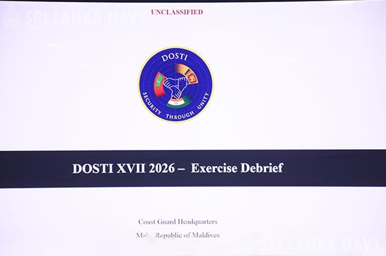 ඉන්දියානු සාගර කාළාපය තුල සමුද්රීය ආරක්ෂක සහයෝගීතාවය වර්ධනය කිරීම සඳහා ශ්රී ලංකා වෙරළාරක්ෂක දෙපාර්තමේන්තුව, ඉන්දීය වෙරළාරක්ෂක දෙපාර්තමේන්තුව සහ මාලදිවයින් ජාතික ආරක්ෂක බලකායේ සහභාගීත්වයෙන් 2026 ජනවාරි මස 16 වැනි දින සිට 19 වැනි දින දක්වා මාලදිවයින් මුහුදු තීරයේදී පැවති ‘EX – DOSTI - XVII ’ ත්රෛයිපාර්ශ්වික නාවික අභ්යසය සාර්ථකව නිමාවට පත්විය.