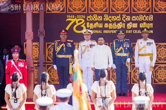 ශ්රී ලංකා ප්රජාතාන්ත්රික සමාජවාදී ජනරජයේ ජනාධිපති හා සන්නද්ධ හමුදා සේනාධිනායක, ගරු අනුර කුමාර දිසානායක මැතිතුමා ගේ ප්රධානත්වයෙන් “ගොඩනගමු ශ්රී ලංකා” යන තේමාව පෙරදැරිව, කොළඹ නිදහස් චතුරස්ර පරිශ්රයේදී අද (2026 පෙබරවාරි 04) පෙරවරුවේ පැවති 78 වැනි ජාතික නිදහස් සැමරුම් උළෙල සඳහා ශ්රී ලංකා නාවික හමුදාව මහත් අභිමානයෙන් යුතුව සහභාගී විය.