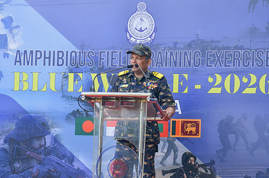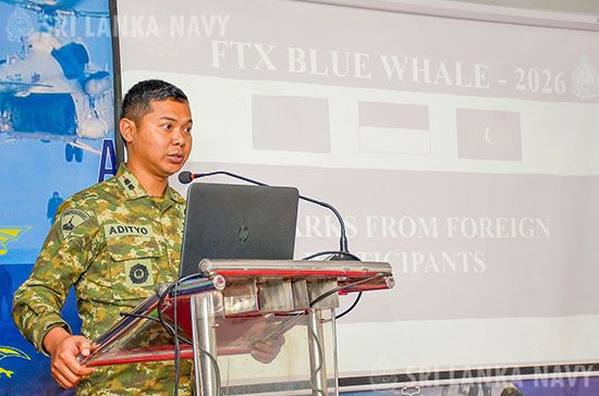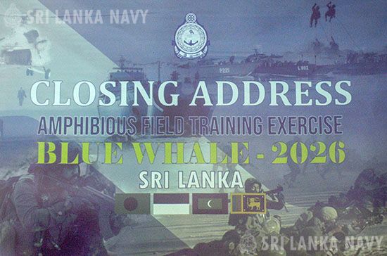 තවද, ‘Blue Whale – 2026’ ක්ෂේත්ර පුහුණු අභ්යාසයේ අවසන් අභ්යාසය සඳහා ධජ නිලධාරී නාවික දියත් විධානය ඇතුළු නැගෙනහිර නාවික විධානයේ සහ මැරීන් බලකායේ ජ්යේෂ්ඨ හා කණිෂ්ඨ නිලධාරීන්, ජ්යේෂ්ඨ හා කණිෂ්ඨ නාවිකයින් ඇතුළු පිරිසක් සහභාගී වී සිටියහ.