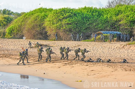 ‘Blue Whale – 2026’ ක්ෂේත්ර පුහුණු අභ්යාසයේදී; සතුරු ග්රහණයේ ඇති භූමියක් වෙත උපක්රමිකව මුහුදෙන් භට පිරිස් සහ යුද සැපයුම් ඇතුළු කිරීමේ භූ ජලතරණ අභ්යාස (Amphibious Operations), සතුරු භූමිය පිළිබඳ හා සතුරාගේ හැකියාවන් පිළිබඳ තොරතුරු රැස් කිරීමේ අභ්යාස (Reconnaissance), දූපත් සහිත ජලාශ්රිත ප්රදේශ තුළ සිදු කරන පරීක්ෂා කිරීමේ මෙහෙයුම් (Riverine/ Search and Clear Operations), භූ ජලතරණ ප්රහාර අභ්යාස (Amphibious Assault), මුහුදේ සිට ගොඩබිමෙහි හඳුනාගත් සතුරු ඉලක්ක වෙත ප්රහාර එල්ල කිරීමේ අභ්යාස (Naval Surface Fire Support - NSFS), ගුවනින් සංග්රාම භූමිය වෙත භට පිරිස් ඇතුලු කිරීමේ අභ්යාස (Air Infiltration by Rappelling), සංග්රාමික අවස්ථාවකදී අමතර භට පිරිස් යෙදවීම සහ ගුවනින් තුවාල කරුවන් ඉවත් කිරීමේ අභ්යාස (Reinforcement and CASEVAC) සහ සතුරු ග්රහණයෙන් මුදාගත් ප්රදේශ තුළ ජන ජීවිතය යථාතත්වයට පත් කිරීම සඳහා සිදු කරන ආරක්ෂක මෙහෙයුම් (Stability Operations) ඇතුළු පුහුණු අභ්යාස රැසක් සාර්ථකව සිදු කෙරුණි.