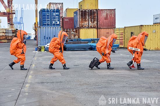 ශ්රී ලංකා නාවික හමුදාව විසින්, හදිසි රසායනික, ජීව විද්යාත්මක, විකිරණ හා න්යෂ්ටික (CBRN) උපද්රව අවස්ථාවන්හිදී ගතයුතු ක්රියාමාර්ග පිළිබඳව දැනුවත් කිරීම සඳහා වූ පුහුණු අභ්යාසයක්, 2026 මාර්තු 31 වන දින කොළඹ වරායේ යුනිටි බහාලුම් පර්යන්ත (UCT) ජැටියේදී සාර්ථකව පැවැත්වීමට කටයුතු කෙරිණි.