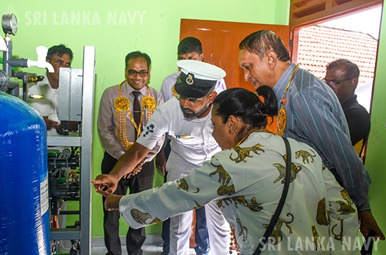 கடற்படையின் தொழில்நுட்ப உதவியுடன், சுகாதார அமைச்சின் தலைமையின் கீழ், ஜனாதிபதி செயலகத்தின் நிதி உதவியுடன், ஒரு (01) நீர் சுத்திகரிப்பு நிலையம் கட்டப்பட்டுள்ளதுடன், கம்மெத்த சமூக நலத் திட்டத்தின் கீழ் Oasis Plant and Seeds Exporters உரிமையாளரின் நிதி பங்களிப்பு மற்றும் ஓய்வுபெற்ற பட்டய கணக்காளர் திரு. மற்றும் திருமதி. பி. சிவேந்திராவின் நிதி பங்களிப்புடன், இந்த இரண்டு (02) நீர் சுத்திகரிப்பு நிலையங்கள் நிறுவப்பட்டுள்ளன, இதன் மூலம் கடற்படையால் நியமிக்கப்பட்ட மொத்த நீர் சுத்திகரிப்பு நிலையங்களின் எண்ணிக்கை 1135 ஆக உயர்ந்துள்ளதுடன், இவ்வாறு பொதுமக்களுக்குத் திறக்கப்படும் 03 நீர் சுத்திகரிப்பு நிலையங்கள், திருகோணமலையில் உள்ள மொரவெவ வடக்கு சிங்களப் பள்ளி, அனுராதபுரம் மாவட்டத்தில் உள்ள நாச்சதுவ அ/திவுல்வெவ பள்ளி மைதானம் மற்றும் மன்னார் மாவட்டத்தில் உள்ள பேசாலை கிராமத்தில் வசிக்கும் ஏராளமான மக்கள் மற்றும் பள்ளி மாணவர்களின் சுத்தமான குடிநீர் தேவைகளை எளிதில் பூர்த்தி செய்ய முடியும்.