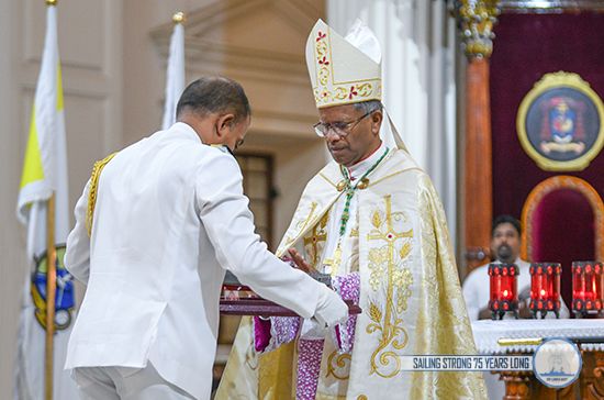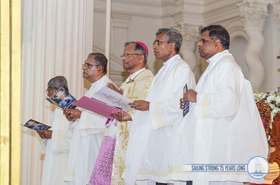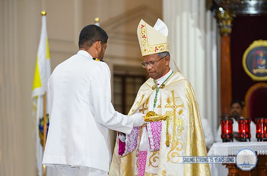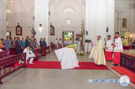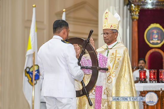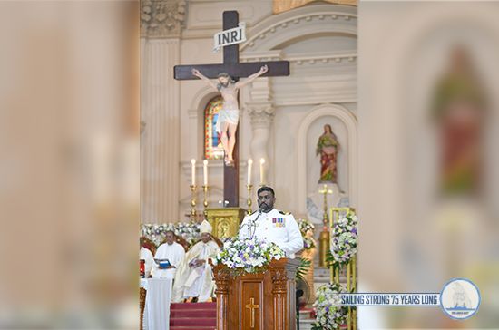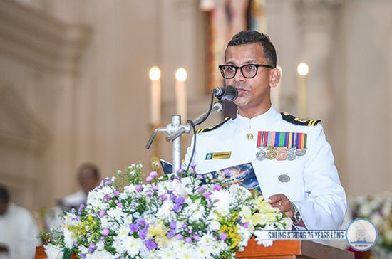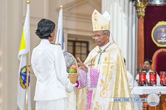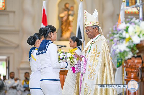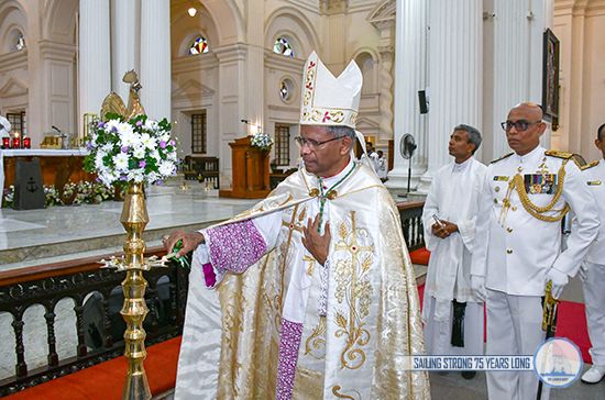 "கடலின் பாதுகாவலரே, எங்கள் இறைவனின் அமைதியும் பலமும் உங்களுடன் இருக்கட்டும்," என்று திருகோணமலை ஆயர் டாக்டர் நோயல் இம்மானுவேல், இலங்கை கடற்படை அடைந்த அனைத்து வெற்றிகளுக்கும் கடவுளைப் புகழ்ந்து நன்றி தெரிவித்தார். தாய்நாட்டிற்கு அமைதியைக் கொண்டுவருவதற்காக உன்னத தியாகங்களைச் செய்த அனைவரையும் மரியாதையுடன் நினைவுகூரும் வகையில், கிறிஸ்தவ மத நடைமுறைகளுக்கு ஏற்ப கடற்படைக் கொடி மற்றும் கடற்படை கட்டளைக் கொடிகளுக்கு ஆசீர்வாதங்கள் வழங்கப்பட்டன. அதேபோல், கடற்படையின் 75 ஆண்டுகால வரலாற்றில் தாய்நாட்டின் இறையாண்மை மற்றும் பிராந்திய ஒருமைப்பாட்டைப் பாதுகாக்க தங்கள் உயிரைத் தியாகம் செய்த மற்றும் போரில் வீழ்ந்த அனைத்து கடற்படை வீரர்களுக்கும், தற்போது பணியாற்றும் மற்றும் ஓய்வு பெற்ற அனைத்து கடற்படை வீரர்களுக்கும், அவர்களது குடும்ப உறுப்பினர்களுக்கும், முழு கடற்படைக்கும் ஆசீர்வாதங்கள் தெரிவிக்கப்பட்டன.