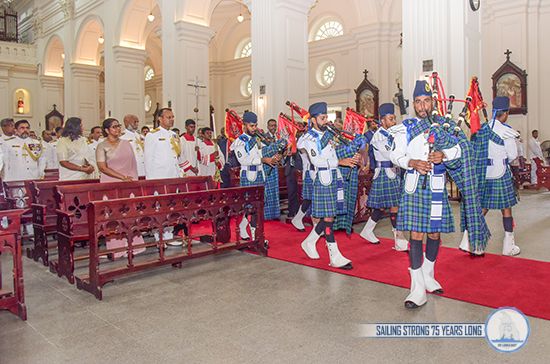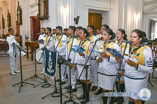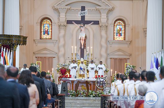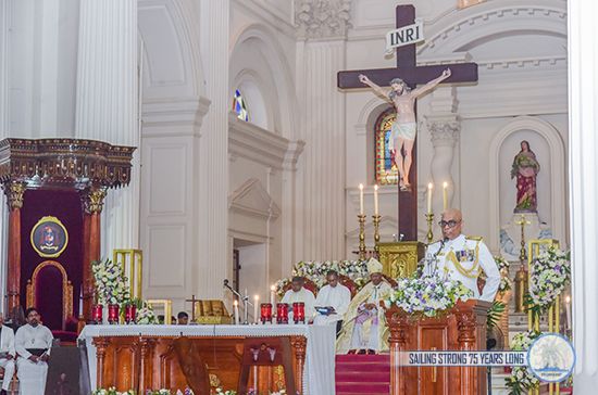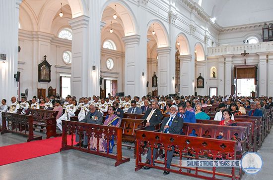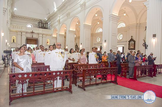 இலங்கை கடற்படையின் 75வது ஆண்டு நிறைவை முன்னிட்டு கடற்படைக்கு ஆசிர்வதிக்கும் வகையில் நடத்தப்படும் மத நிகழ்ச்சிகளின் ஒரு பகுதியாக, கூட்டு கிறிஸ்தவ உற்சவம் மற்றும் நன்றி செலுத்தும் ஆராதனை , கோட்டாஞ்சேனையில் உள்ள செயிண்ட் லூசியா கதீட்ரலில், கடற்படை கிறிஸ்தவ சங்கத்தின் தலைமையில், பிரதி தலைமை அதிகாரி,விநியோகம் மற்றும் சேவை இயக்குநர் ரியர் அட்மிரல் ருவன் கலுபோவிலன் தலைமையில், 2025 நவம்பர் 21 அன்று நடைபெற்றது.