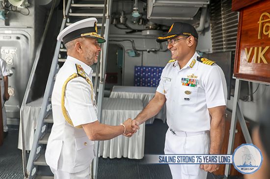அங்கு, கெப்டன் Ashok Rao வினால் இலங்கை கடற்படைத் தளபதி INS VIKRANT கப்பலிற்கு கடற்படை மரபுகளின்படி அன்புடன் வரவேற்ற பிறகு, கடற்படைத் தளபதி கப்பலில் ஆய்வு சுற்றுப்பயணம் மேற்கொண்டார். கடல்சார் பாதுகாப்பிற்கான வலுவான ஒத்துழைப்பை வலியுறுத்தும் “Sailing Strong Together” என்ற கருப்பொருளின் கீழ் நடைபெறும் சர்வதேச போர்க்கப்பல் கண்காணிப்பு - 2025 இல் பங்கேற்பதற்கும் பாராட்டு தெரிவிக்கப்பட்டது.