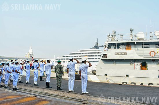 மாலைதீவு கடலோர காவல்படை கப்பலான 'HURAVEE' 2026 மார்ச் 02 ஆம் திகதி தீவுக்கு பொருட்கள் மற்றும் சேவைகளை மேற்கொள்வதற்காக வந்தடைந்ததுடன் , மேலும் இலங்கை கடற்படையினர் கொழும்பு துறைமுகத்தில் கடற்படை மரபுகளுக்கு இணங்க குறித்த கப்பலை வரவேற்றனர்.