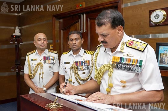 Admiral Dinesh K Tripathi, the Chief of Naval Staff of the Indian Navy, arrived in Sri Lanka on a four-day official visit, met with the Commander of the Sri Lanka Navy, Vice Admiral Kanchana Banagoda at the Navy Headquarters in Colombo today (22 Sep 25).