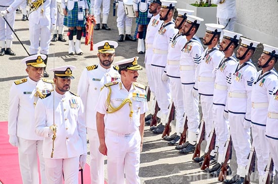 The visit’s key engagements began on the morning of 22 September at the Navy Headquarters in Colombo, where Admiral Tripathi was accorded a ceremonial welcome comprising a Guard of Honour in keeping with naval traditions. Next, the visiting Navy Chief was ushered by Vice Admiral Banagoda, for rest of the proceedings of the bilateral meeting.