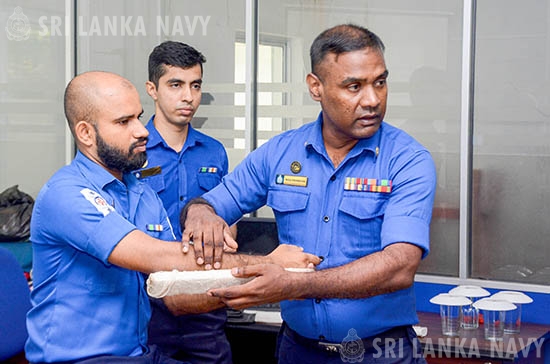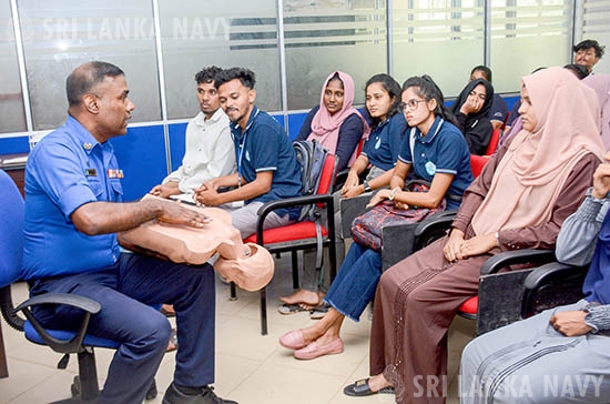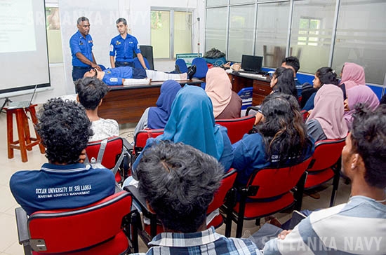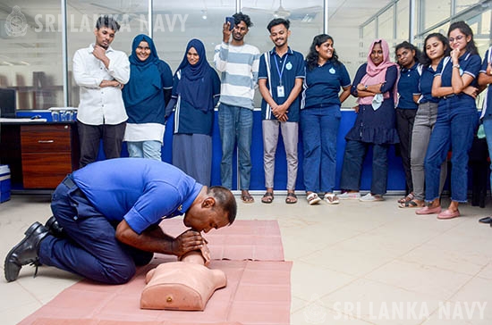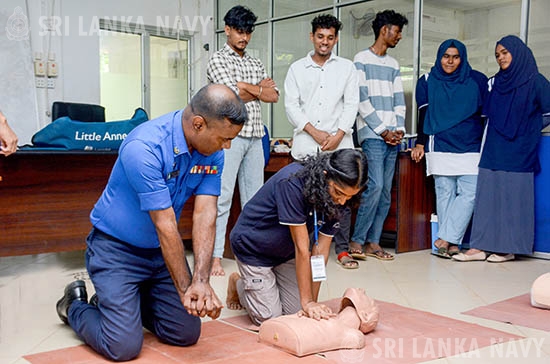 The Sri Lanka Navy organized a Basic First Aid, Basic Life Support (BLS), and Water Safety Training Programme for students of the Ocean University of Sri Lanka, Trincomalee Regional Centre on 16 Oct 25.