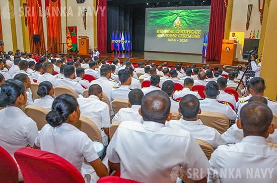 The General Certificate Awarding Ceremony of 37th Junior Naval Staff Course (JNSC) and 23rd Sub Lieutenant Technical Course (Provost/ Infantry) was held at the Auditorium of the Naval and Maritime Academy (NMA), Trincomalee, on 23 Oct 25. The Commander of the Navy, Vice Admiral Kanchana Banagoda, graced the occasion as the Chief Guest, at the invitation of the Commandant NMA, Commodore Dinesh Bandara.