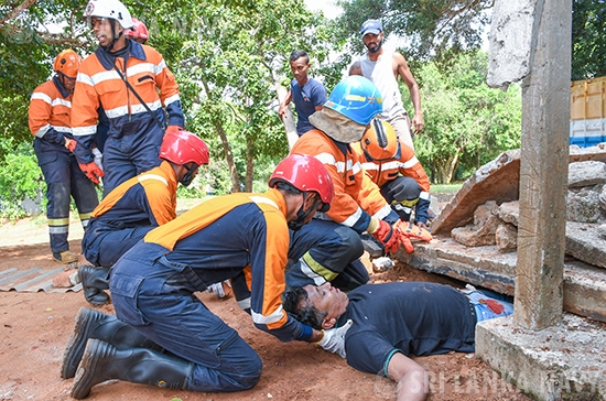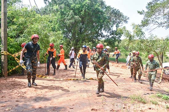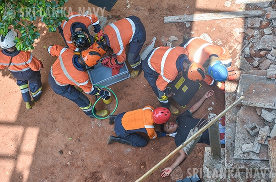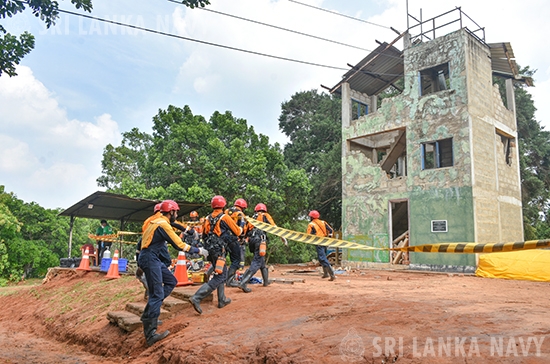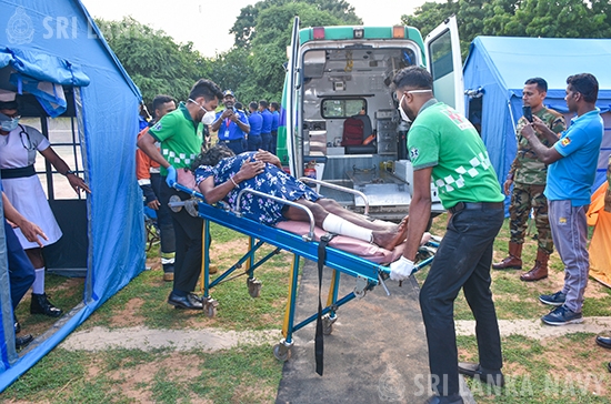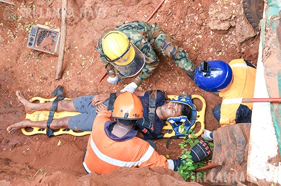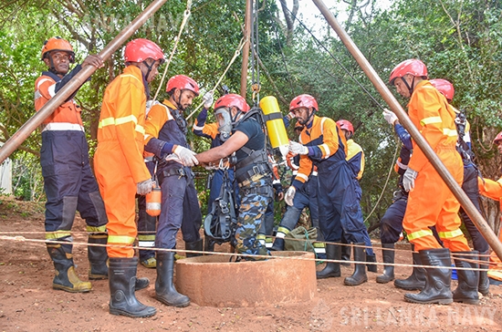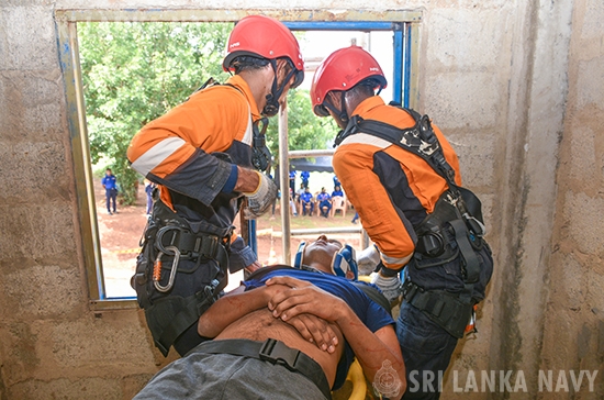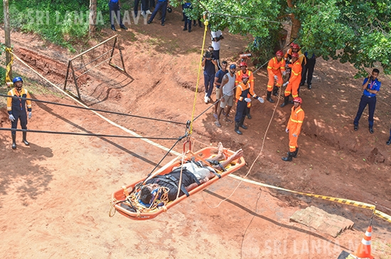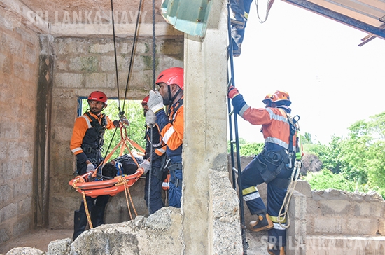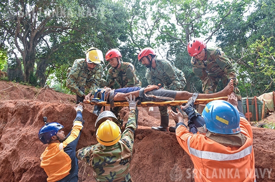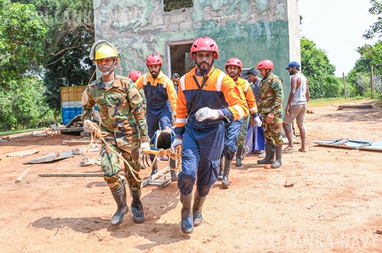 This theoretical knowledge was then put into practice during the final day, culminating in a large-scale, joint practical exercise. Utilizing advanced training simulators, personnel engaged in realistic drills for disaster response to landslides, building collapses, and floods. The exercise showcased exceptional inter-agency coordination, with active participation from the Tri-Services, Police, Disaster Management Centre, National Disaster Relief Service Centre, Fire Department, and the Suwa Seriya Ambulance Service.