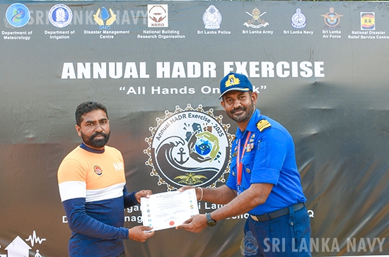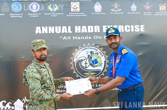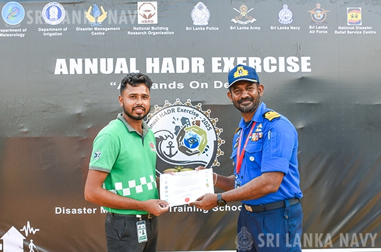The exercise was further augmented by the support of a Bell 212 helicopter from the Sri Lanka Air Force. The closing ceremony was presided over by Commanding Officer of the Navy's Rapid Action Boats Squadron. The event concluded with the presentation of certificates to participants, recognizing their commitment and enhanced readiness.