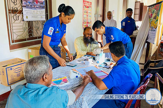 In commemoration of its 75th anniversary, the Sri Lanka Navy conducted a series of community-focused programmes, underscoring its commitment to social responsibility, environmental stewardship and ethical values. The initiatives included a community health clinic in Nilaveli, Trincomalee on 07 Dec 25 and a blood donation campaign at the Naval Hospital in SLNS Nipuna on 10 December.