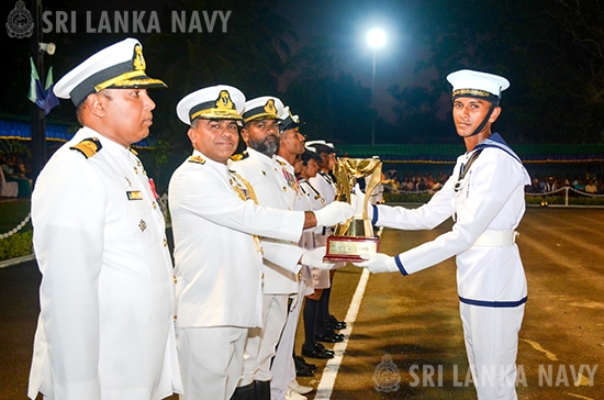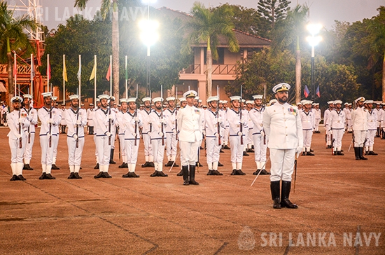 The colourful spectacle also featured a vibrant drill display presented by the newly passed out recruits, entertaining performances of the Navy Band and Cultural Troupe and a display of old Sri Lankan martial art ‘Angam Haramba’. The proceedings of the passing out parade came to an end with the ceremonial sunset.