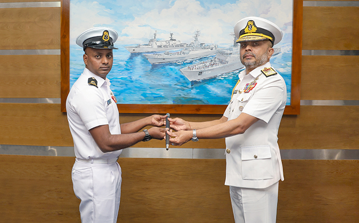 In a formal event held at Navy Headquarters on 18 Sep 25, Master Chief Petty Officer AHD Weeratunga was appointed as the new Master Chief Petty Officer of the Navy (MCPON). The Commander of the Navy, Vice Admiral Kanchana Banagoda, officiated the proceedings, presenting the MCPON armband and baton to Master Chief Petty Officer Weeratunga and extending congratulations on the appointment. The appointment follows the impending retirement of the outgoing MCPON, Master Chief Petty Officer PRMJB Pussalamankada.