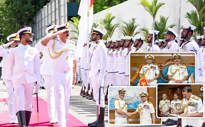 Admiral Dinesh K Tripathi, the Chief of Naval Staff of the Indian Navy, arrived in Sri Lanka on a four-day official visit, met with the Commander of the Sri Lanka Navy, Vice Admiral Kanchana Banagoda at the Navy Headquarters in Colombo today (22 Sep 25).
