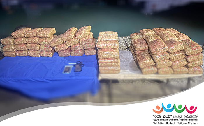 இலங்கை கடற்படையினர், கல்பிட்டியின் இப்பந்திவு கடலோரப் பகுதியில் மேற்கொண்ட சிறப்பு கடற்படை நடவடிக்கையின் போது, மூன்று (03) பைகளில் சந்தேகத்திற்கிடமான போதைப்பொருட்களை ஏற்றிச் சென்ற டிங்கி படகானது 2025 டிசம்பர் 05 ஆம் திகதி இரவு கடற்படையினரால் கைப்பற்றப்பட்டது. கடற்படையினரால் கைப்பற்றப்பட்ட டிங்கி படகிற்கு உதவுவதற்காக வந்த மற்றுமொரு டிங்கி படகில் இருந்த நான்கு (04) சந்தேக நபர்களுடன், இன்று (2025 டிசம்பர் 06) காலை பொலிஸ் போதைப்பொருள் தடுப்புப் பணியகத்தால் நடத்தப்பட்ட நிபுணர் பரிசோதனையின் மூலம், அந்தப் பைகளில் 63 கிலோகிராமை விட அதிகமான ஐஸ் மற்றும் 14 கிலோகிராமை விட அதிகமான ஹெராயின் இருப்பது உறுதி செய்யப்பட்டதுடன், இந்த நடவடிக்கை தொடர்பாக பொலிஸ் போதைப்பொருள் தடுப்புப் பணியகத்தில் நடைபெற்ற ஊடகவியலாளர் சந்திப்பில் கடற்படைத் தளபதி வைஸ் அட்மிரல் கான்சன பானகொட மற்றும் பொலிஸ் மா அதிபர் பிரியந்த வீரசூரிய ஆகியோர் கலந்து கொண்டனர்.