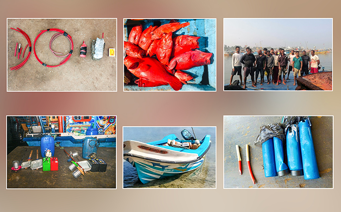 இலங்கை கடற்படை 2026 ஜனவரி 06 முதல் 11 வரை உள்ளூர் கடல் பகுதியை உள்ளடக்கிய நடவடிக்கைகளின் மூலம், தடைசெய்யப்பட்ட மீன்பிடி வலைகள், வெடிபொருட்கள், உரிமங்கள் இல்லாமல் சுழியோடுதல் மற்றும் சட்டவிரோத மீன்பிடி முறைகளைப் பயன்படுத்தி மீன்பிடி நடவடிக்கைகளில் ஈடுபட்ட நான்கு (04) டிங்கி படகுகளுடன் பதின்மூன்று (13) நபர்களையும் கடற்படையினர் கைப்பற்றினர்.
