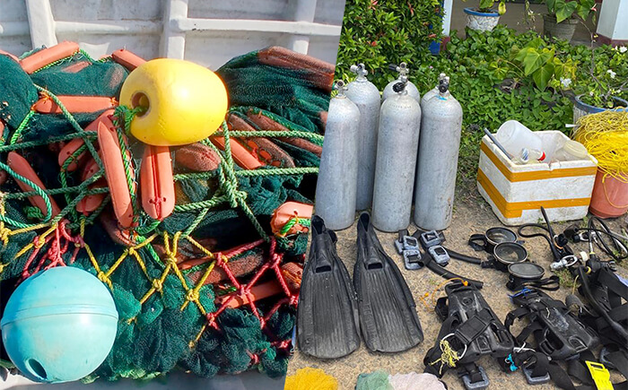 In a series of coordinated search operations conducted by the Navy from 28 Feb to 09 Mar 25, twenty-six (26) individuals involved in various illegal fishing activities were apprehended. The individuals were caught engaging in practices such as illegal night diving, illegal harvesting of sea cucumbers, and the use of explosives for fishing. The operations spanned multiple locations, including Nandikadal Lagoon, Back Bay, Manmunai, Erakkandi, Veththalakerni, Batticaloa Lagoon, Mannar, Kudiramalei Point, and Kinniya. During the raids, authorities confiscated illegal fishing gear, including 233 trap nets, 12 trammel nets, 11 monofilament nets, and 2,130 sea cucumbers, as well as 02 cabs and 04 dinghies.