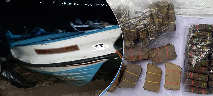 A search operation conducted by the Sri Lanka Navy in the sea area of Karuwalakuda and Sinna Arichchai, Kalpitiya on the night of 03 Mar 25 led to the apprehension of 03 suspects for smuggling about 426kg of Kendu leaves. The operation also resulted in the seizure of 02 dinghies used for this illegal act.