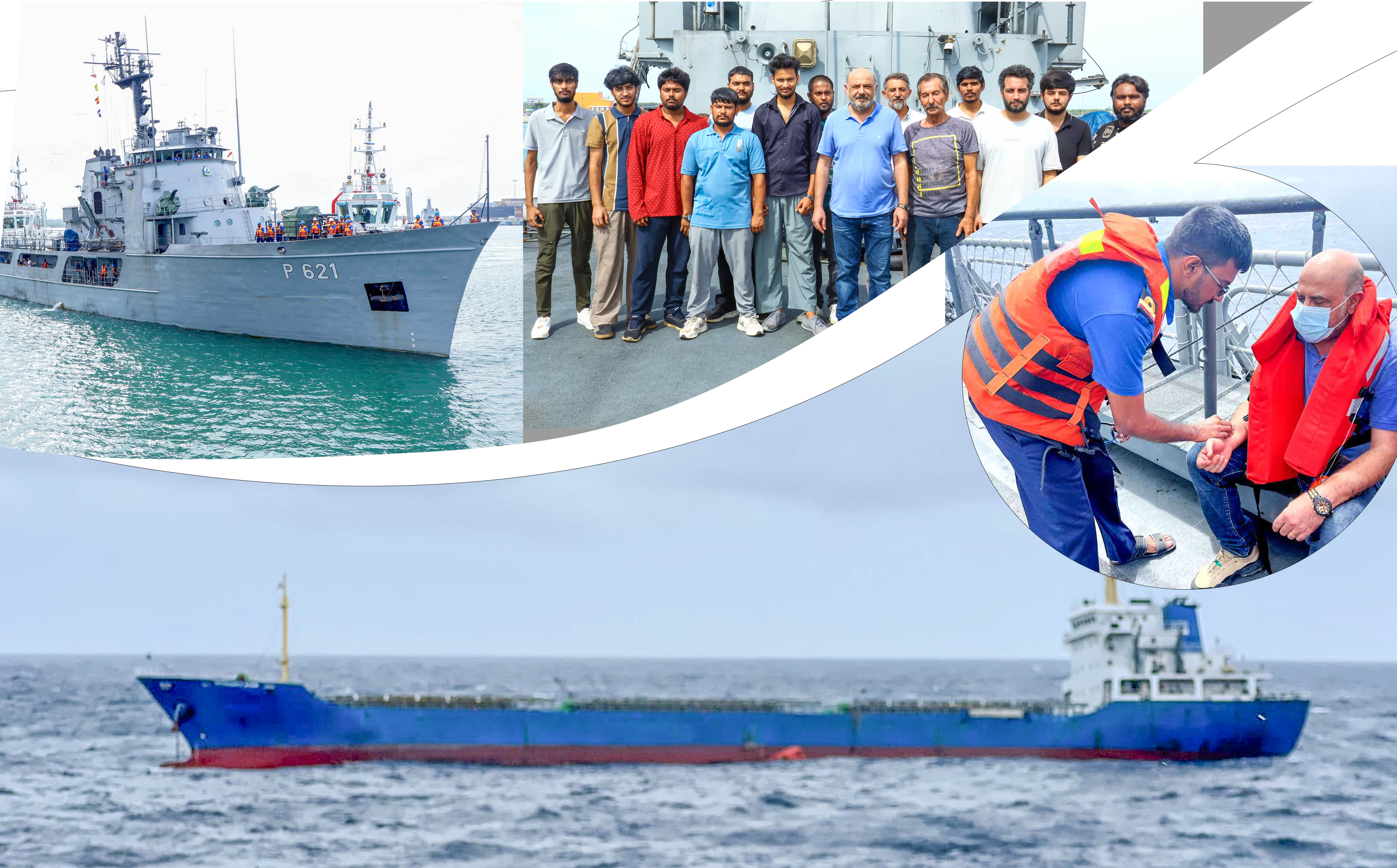 ශ්රී ලංකාවට දකුණු දෙසින්, නාවික සැතපුම් 100 ක පමණ දුරින් වූ ගැඹුරු මුහුදේදී, ප්රධාන යන්ත්ර අක්රීයවී ආපදාවට පත්ව, ජීවිත අවදානමට ලක්ව සිටි, MV INTEGRITY STAR වෙළද නෞකාවේ කාර්ය මණ්ඩලය, නාවික හමුදාව සිදුකළ සාර්ථක සෙවීමේ හා මුදාගැනීමේ මෙහෙයුමකින් නිරුපද්රිතව මුදාගැනීමෙන් අනතුරුව අද ( 2025 ඔක්තෝබර් 26) උදෑසන හම්බන්තොට වරාය වෙත රැගෙන ඒමට කටයුතු කෙරිණි.