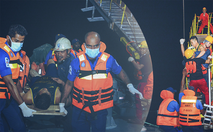 ආපදාවට පත් කෙෂාන් පුතා 1 බහු දින ධීවර යාත්රාවේ ධීවරයින් 04ක් සිඳුරළ නෞකාවෙන් හම්බන්තොට වරාය වෙත රැගෙන එයි