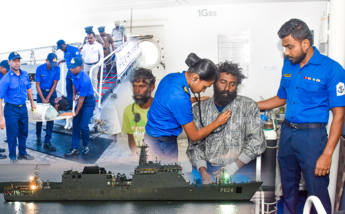 හම්බන්තොට සිට නාවික සැතපුම් 354ක් පමණ (කිමි 655ක් පමණ) දුරින් වූ ගැඹුරු මුහුදේදී, ආපදාවට පත් කෙෂාන් පුතා 1 බහු දින ධීවර යාත්රාවේ සිටි ධීවරයින් සිව් දෙනෙකු (04), කොළඹ සමුද්රිය සෙවීම් හා මුදා ගැනීම් සම්බන්ධීකරණ මධ්යස්ථානයේ සම්බන්ධීකරණයෙන් බේරාගැනීමෙන් අනතුරුව, ශ්රී ලංකා නාවික නෞකා සිඳුරළ නෞකාව මඟින් හම්බන්තොට වරාය වෙත අද උදෑසන (2025 ඔක්තෝබර් 31) රැගෙන විත්, වැඩිදුර ප්රථිකාර සඳහා හම්බන්තොට මහ රෝහල වෙත ඇතුළත් කිරීමට නාවික හමුදාව විසින් කටයුතු කෙරිණි.