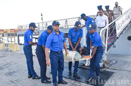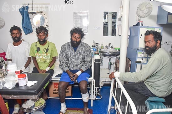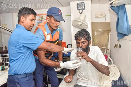 හම්බන්තොට සිට නාවික සැතපුම් 354ක් පමණ (කිමි 655ක් පමණ) දුරින් වූ ගැඹුරු මුහුදේදී, ආපදාවට පත් කෙෂාන් පුතා 1 බහු දින ධීවර යාත්රාවේ සිටි ධීවරයින් සිව් දෙනෙකු (04), කොළඹ සමුද්රිය සෙවීම් හා මුදා ගැනීම් සම්බන්ධීකරණ මධ්යස්ථානයේ සම්බන්ධීකරණයෙන් බේරාගැනීමෙන් අනතුරුව, ශ්රී ලංකා නාවික නෞකා සිඳුරළ නෞකාව මඟින් හම්බන්තොට වරාය වෙත අද උදෑසන (2025 ඔක්තෝබර් 31) රැගෙන විත්, වැඩිදුර ප්රථිකාර සඳහා හම්බන්තොට මහ රෝහල වෙත ඇතුළත් කිරීමට නාවික හමුදාව විසින් කටයුතු කෙරිණි.