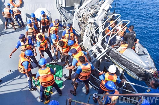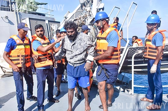 ආපදාවට පත් කෙෂාන් පුතා 1 බහු දින ධීවර යාත්රාවේ ධීවරයින් 04ක් සිඳුරළ නෞකාවෙන් හම්බන්තොට වරාය වෙත රැගෙන එයි
