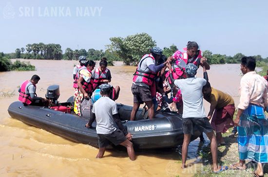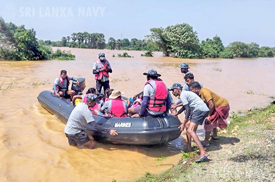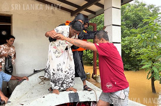 The Eastern Naval Command conducted flood relief operations in Trincomalee, Batticaloa, and Polonnaruwa districts, rescuing 195 people whose lives were at risk and safely transporting 1,632 others. Meanwhile, the Northwestern Naval Command carried out similar operations in Puttalam and Kurunegala districts, rescuing 580 people and ensuring the safe transport of 3,924 individuals.
