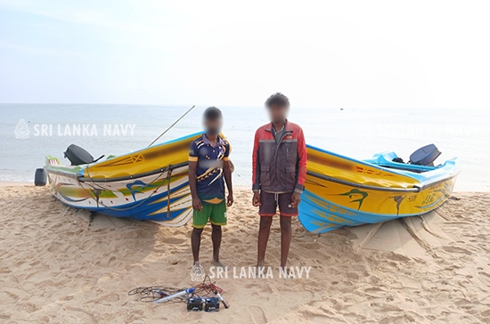 ශ්රී ලංකා නාවික හමුදාව, ධීවර පරීක්ෂක කාර්යාල හා එක්ව කඩෙයිකාඩු, පුදුමාතලන්, ත්රීකුණාමලය, කෝකිලායි, චැපල් දුපත සහ බැක් බේ වෙරළ සහ මුහුදු ප්රදේශ ආශ්රිතව 2025 වර්ෂයේ අප්රේල් මස 21 වැනි දින සිට 28 වැනි දින දක්වා සිදුකල සෝදිසි මෙහෙයුම් මඟින්, නීති විරෝධී ලෙස විදුලි ආලෝකය භාවිතයෙන් සහ නීති විරෝධි දැල් භාවිතයෙන් ධීවර කටයුතු සිදුකල පුද්ගලයින් තිස්අටක් (38) නීතියේ රැහැනට හසුකර දීමට කටයුතු කෙරිණි.
