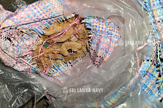 ශ්රී ලංකා නාවික හමුදාව කල්පිටිය, රොදාපාඩු කලපු ප්රදේශයේ 2025 මැයි මස 17 වැනි දින සිදුකළ විශේෂ සෝදිසි මෙහෙයුමක් මඟින්, නීතී විරෝධී ලෙස මුහුදු මාර්ගයෙන් රට තුළට රැගෙන ඒමට උත්සහ කළ බවට සැකකෙරෙන වියළි ඉඟුරු කිලෝග්රෑම් 320 ක පමණ තොගයක් සහ එනසාල් කිලෝග්රෑම් 150 ක පමණ තොගයක් රැගත් ඩිංගි යාත්රාවක් නාවික හමුදා භාරයට ගැනීමට කටයුතු කෙරිණි.