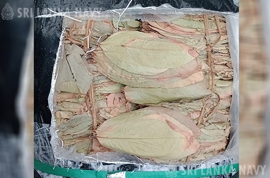 ශ්‍රී ලංකා නාවික හමුදාව, කල්පිටිය තලවිල මුහුදු ප්‍රදේශය ආශ්‍රිතව 2025 ඔක්තෝබර් මස 21 වැනි දින උදෑසන සිදුකල විශේෂ සෝදිසි මෙහෙයුමක් මඟින්, නීති විරෝධී ලෙස මෙරටට රැගෙන ඒම‍‍ට උත්සාහ කළ බීඩි කොළ කිලෝ ග්‍රෑම් එක්දහස් හාරසිය දහසයක (1416) පමණ තොගයක් නාවික හමුදා භාරයට ගැනීමට කටයුතු කෙ‍රිණි.