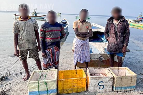 ශ්රී ලංකා නාවික හමුදාව යාපනය වේන්පූරිනගර් වෙරළ ප්රදේශයේ 2026 ජනවාරි මස 20 වැනි දින උදෑසන සිදුකල විශේෂ සෝදිසි මෙහෙයුමක් මඟින්, නීති විරෝධී ලෙස මුහුදු කූඩැල්ලන් ඇල්ලූ පුද්ගලයින් සිව් දෙනෙකු (04) සමඟ මුහුදු කූඩැල්ලන් ගණනින් තුන්සිය පනස් එකක් (351) සහ ඩිංගි යාත්රාවක් (01) නාවික හමුදා භාරයට ගැනීමට කටයුතු කෙරිණි.