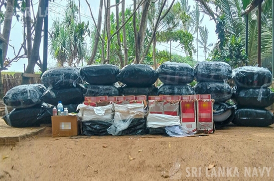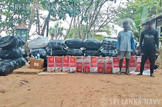 ශ්රී ලංකා නාවික හමුදාව, වෙරළාරක්ෂක දෙපාර්තමේන්තුව හා එක්ව හලාවත සහ තුඩුවාව මුහුදු ප්රදේශයේ 2026 පෙබරවාරි මස 21 වැනි දින සිදුකළ විශේෂ එකාබද්ධ සෝදිසි මෙහෙයුම් මඟින්, නීති විරෝධී ලෙස ප්රවාහනය කරමින් සිටි සහ නීති විරෝධී ලෙස මෙරටට රැගෙන ඒමට උත්සහ කල බීඩි කොළ කිලෝ ග්රෑම් නවසිය අනුදෙකකට (992) අධික තොගයක්, විදේශීය දුම්වැටි එක්ලක්ෂ හතලිස් දහසක් (140,000), කෘමිනාශක ද්රව්ය තොගයක් සමඟ සැකකරුවන් දෙදෙනෙකු (02) සහ ඩිංගි යාත්රාවක් (01) නීතියේ රැහැනට හසුකර දීමට කටයුතු කෙරිණි.