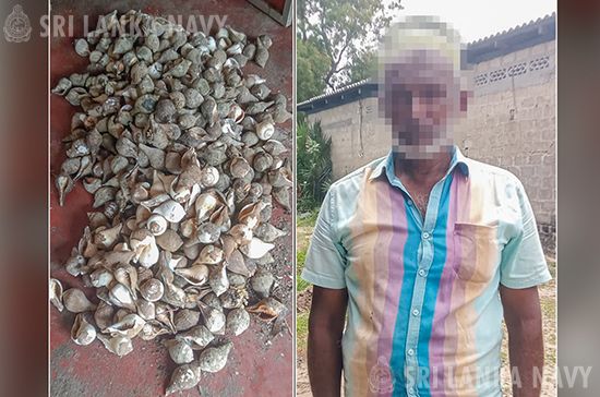 அதன்படி, மன்னார் மீன்வள ஆய்வு அலுவலகத்துடன் இணைந்து வடமத்திய கடற்படை கட்டளையின் இலங்கை கடற்படை கப்பல் கஜபா நடத்திய இந்த தேடுதல் நடவடிக்கையின் போது, அப்பகுதியில் உள்ள ஒரு சந்தேகத்திற்கிடமான வீட்டை சோதனையிட்டனர். அங்கு, வீட்டில் சேமித்து வைக்கப்பட்டிருந்த, 70மிமீ சுற்றளவு சட்டப்பூர்வ வரம்பை பூர்த்தி செய்யாத சுமார் ஆயிரத்து நூற்று ஐம்பத்தெட்டு (1158) சங்குகளுடன் சந்தேக நபர் ஒருவர் (01) கடற்படையினரால் கைது செய்யப்பட்டார்.