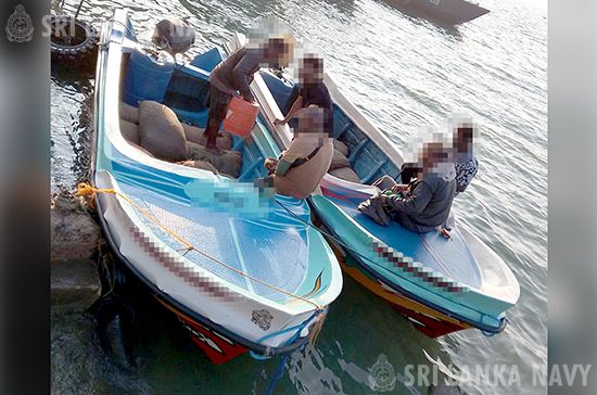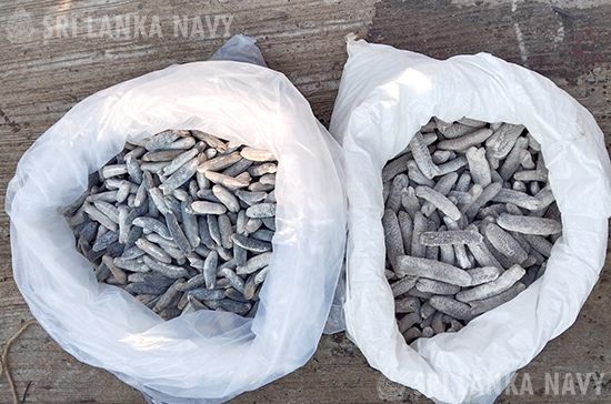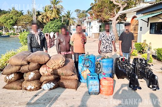 இலங்கை கடற்படையினர் 2026 மார்ச் 05 மற்றும் 06 ஆம் திகதிகளில் கல்பிட்டி, முகத்துவாரம் மற்றும் கீரமுண்டலம் ஆகிய கடல் பகுதிகளை உள்ளடக்கி நடத்திய சிறப்பு தேடுதல் நடவடிக்கைகளின் மூலம், சட்டவிரோதமாக நாட்டிற்கு கொண்டு வர முயன்ற சுமார் ஆயிரத்து நூற்று நாற்பத்தாறு (1,146) கிலோகிராம் உலர்ந்த கடல் அட்டைகளை ஏற்றிச் சென்ற மூன்று (03) டிங்கி படகுகளுடன் ஏழு (07) சந்தேக நபர்களை கடற்படையினர் கைது செய்தனர்.