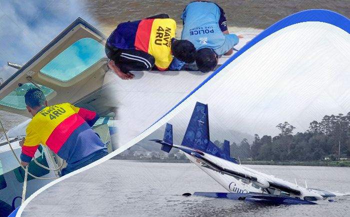 நுவரெலியாவின் கிரிகரி ஏரியில் விபத்துக்குள்ளான விமானத்தின் இரண்டு விமானிகள் மற்றும் உயிர்காப்பாளர்களின் குழுவினரால் பாதுகாப்பாக மீட்கப்பட்டனர்