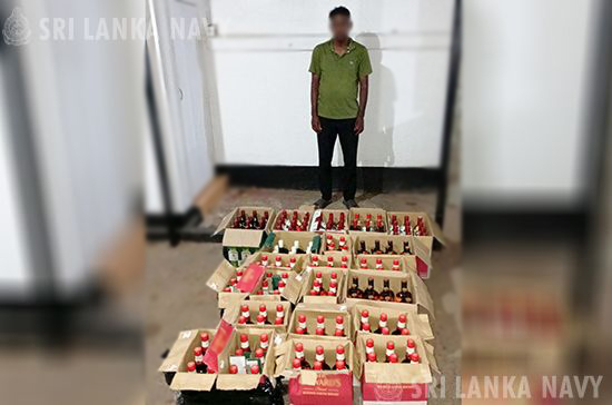 The Sri Lanka Navy, together with the Sri Jayewardenepura Police Special Task Force, carried out a coordinated operation in Modara on 13 Sep 2025, leading to the arrest of a suspect in possession of 180 bottles of foreign liquor intended for illegal sale.