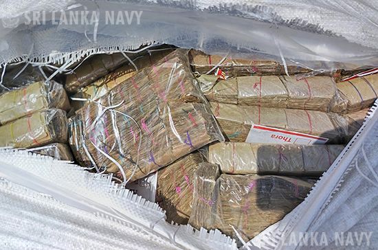 The operation was carried out by SLNS Suranimila, attached to the Western Naval Command, during a patrol off Chilaw. During the operation, the ship detected and intercepted a suspicious dinghy making an approach towards the coast. Upon inspection, the dinghy was found to be carrying 56 sacks of Kendu leaves, weighing about 1,680 kilograms (wet weight).