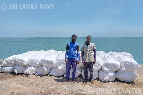 The two suspects, identified as residents of the Janasavipura area in Kalpitiya, were taken into naval custody along with the dinghy and the illicit cargo. Subsequently, they were handed over to the Puttalam Excise Special Unit for further investigation and legal proceedings.