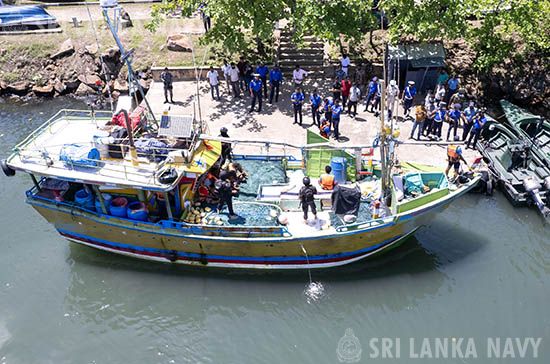 Based on reliable information, the Sri Lanka Navy, with support from the Sri Lanka Coast Guard, intercepted this local multi-day fishing vessel in southern seas after a multi-day surveillance effort.